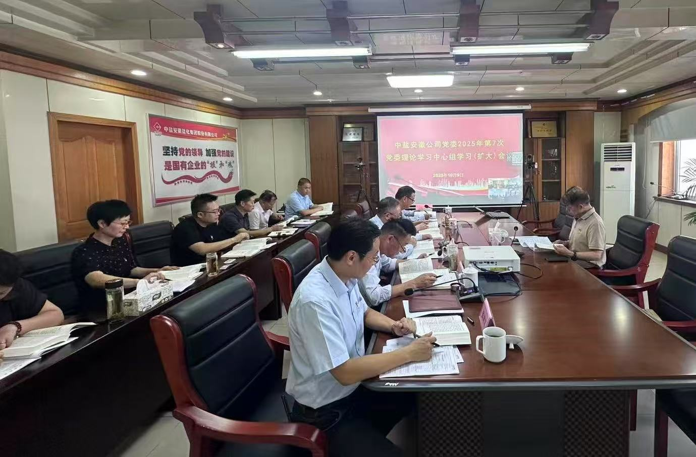 10月9日,中盐安徽公司党委召开2025年第7次理论学习中心组(扩大)会议。集团公司党委委员、工会主席、党群工作部部长、党委理论学习中心组列席旁听第一工作组组长黄芳胜列席指导,公司党委副书记姚吉贵主持会议并讲话。