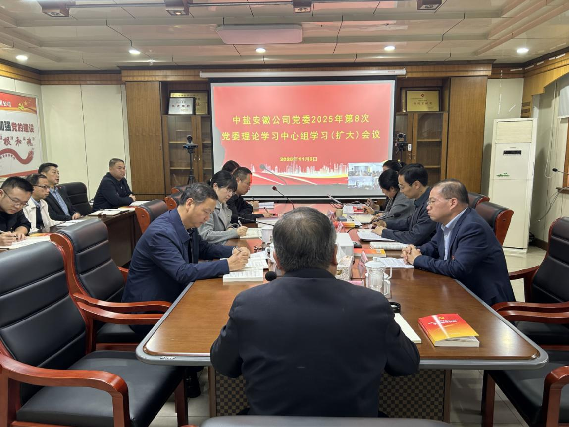 11月6日,中盐安徽公司党委召开2025年第8次理论学习中心组(扩大)会议,专题学习党的二十届四中全会精神,统一思想、凝聚共识、推动落实。公司党委书记姚吉贵主持会议并讲话